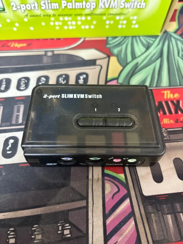 Le KVM 2 ports Slim Palmtop PS/2 avec audio permet de contrôler deux PC avec un seul clavier, souris et écran VGA, tout en gérant l’audio et le micro. Compact, rapide et compatible Windows, Linux et macOS, il offre une résolution VGA jusqu’à 2048 × 1536 pour un usage professionnel ou domestique.